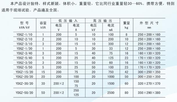 YDGZ型便攜式干式試驗(yàn)變壓器